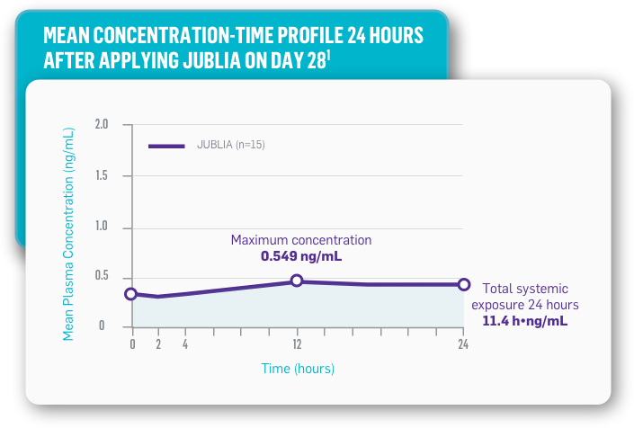 Systemic exposure in pediatric patients was low with JUBLIA, which was consistent with findings in the Phase 3 adult population1,2